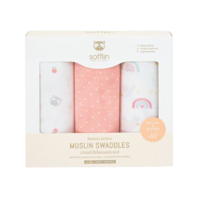 ผ้าอ้อมมัสลิน SOFFLIN ใยไผ่ ขนาด 30 นิ้ว นุ่มละมุน ระบายอากาศดี ซักทน ไม่หด ไม่ย้วย เหมาะกับเด็กแรกเกิดขึ้นไป