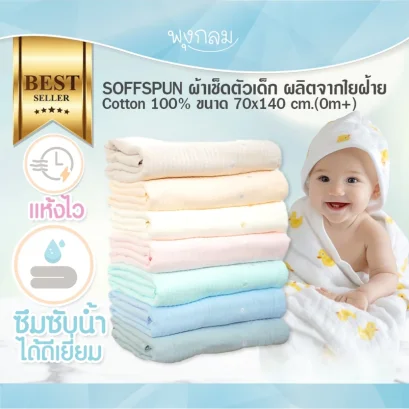 ผ้าขนหนูใหม่จากซอฟลิน เปลี่ยนทุกสัมผัสให้มีความสุขที่เต็มไปด้วยความอ่อนโยน ดั่งสัมผัสปุยเมฆ ช่วยให้หมดกังวลเนื้อผ้ากระด้างและบาดผิว เพราะ soffspun ผลิตจากใยฝ้าย Cotton 100%