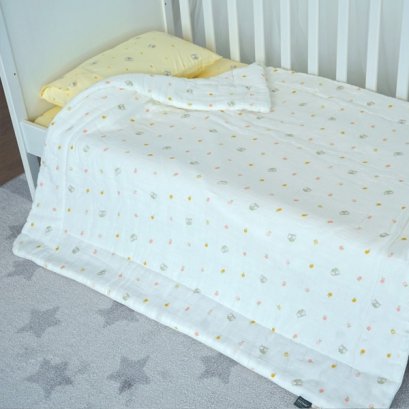 ขนาด 120x150 cm. เนื้อผ้าด้านนอกทอจากผ้ามัสลินใยไผ่ ให้สัมผัสด้านนอกนุ่ม เบาสบาย ซักด้วยเครื่องซักผ้าได้ แห้งเร็ว ไร้กลิ่นอับชื้น