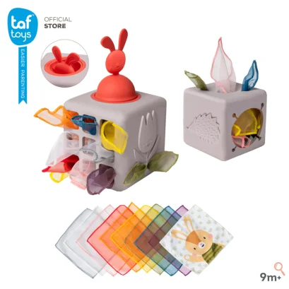 ของเล่นเสริมพัฒนาการ 4-in-1 สำหรับเด็ก 1 ขวบขึ้นไป สนุกกับผ้าชีฟอง ลูกบอล และบล็อกเรียงซ้อน กระตุ้นการเรียนรู้เรื่องสี รูปทรง และขนาด