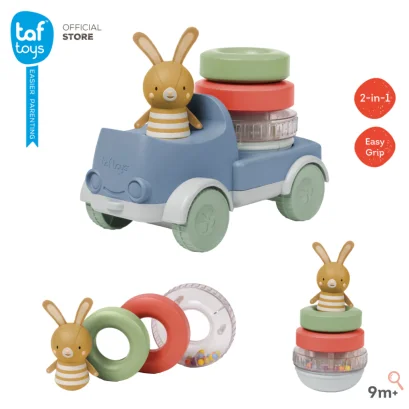 รถบรรทุกกระต่ายห่วงเรียงซ้อนสุดคิ้วท์จาก Taf Toys ที่รวมของเล่นเสริมพัฒนาการหลากฟังก์ชันในชิ้นเดียว! พร้อมสัมผัสพื้นผิวพิเศษที่ช่วยกระตุ้นประสาทสัมผัส ตัวรถสามารถดัน/ลากได้ เสริมสร้างกล้ามเนื้อมัดใหญ่
