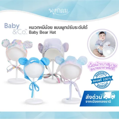 หมวกเด็ก BABY & CO ใยไผ่ Bamboo 80% นุ่ม ระบายอากาศดี มีเชือกรูดปรับขนาด ซับในปิดตะเข็บ เหมาะสำหรับเด็ก 0-12 เดือน