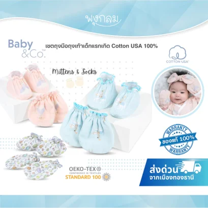 เซ็ทถุงมือถุงเท้าสุดน่ารัก ที่เข้าเซ็ตกับผ้าอ้อมผ้าห่อตัว พร้อมส่งมอบความนุ่มด้วยการทอขึ้นจากเส้นใยธรรมชาติจาก COTTON USA™100% ผสมผสานเทคโนโลยี