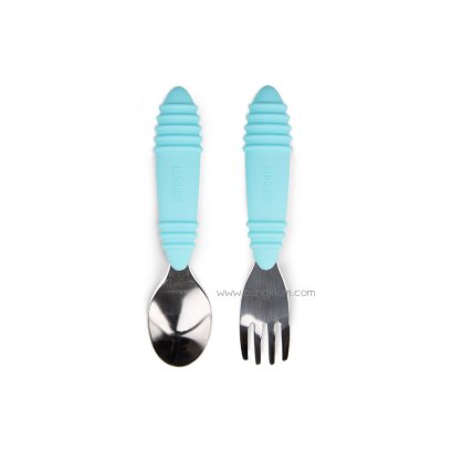 ด้ามจับผลิตจากซิลิโคน Food Grade 100% ปลอดสารพิษ ส่วนช้อนและส้อม ผลิตจาก Stainless steel ไม่มีส่วนคม สามารถนึ่ง ลวก เครื่องอบ UV ได้ สำหรับน้องวัย 18 เดือน ขึ้นไป