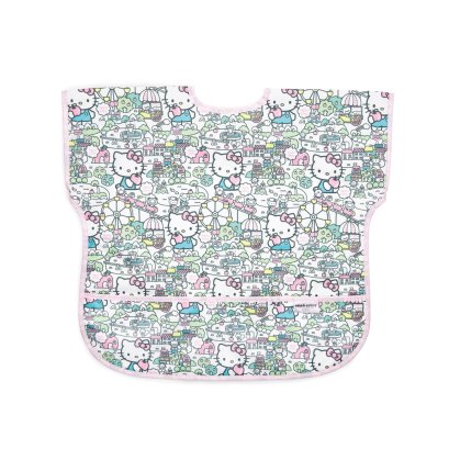 ผ้ากันเปื้อนชนิดกันน้ำ อายุ 3-7 ปี ขนาด 16.5 x 18 นิ้ว วัสดุทำจาก Polyester แต่ให้ความรู้สึกเบาสบายคล้ายผ้า (Waterproof Fabric) ด้านหน้ามีกระเป๋าสำหรับรองรับของเปื้อน