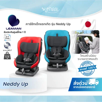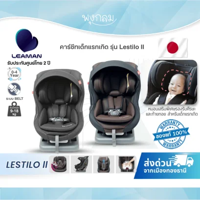 คาร์ซีทแรกเกิด–4 ปี ติดตั้งด้วยเข็มขัด 3 จุด รองรับ 0–18 กก. ผ่านมาตรฐาน UN R44/04 ผลิตในญี่ปุ่น รับประกันโครงสร้าง 2 ปี