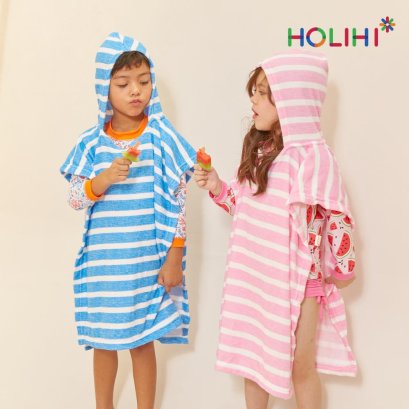 ผ้าขนหนูเนื้อเบา แค่สวมหัวก็ใช้งาน เช็ดตัว เช็ดผมได้เลย ง่ายๆ เก๋ๆ เด็กๆทำเองได้ ไม่ต้องกลัวผ้าเช็ดตัวหล่นลงพื้น หรือสะดุดหกล้มให้กวนใจ