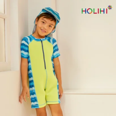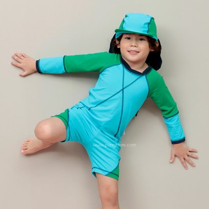Swimsuits ขาสั้น กันยูวี 50%++ ไม่รวมหมวก เนื้อผ้านุ่มใส่สบาย มี 4 ขนาดให้เลือก ตั้งแต่ 6 เดือน - 4 ขวบ