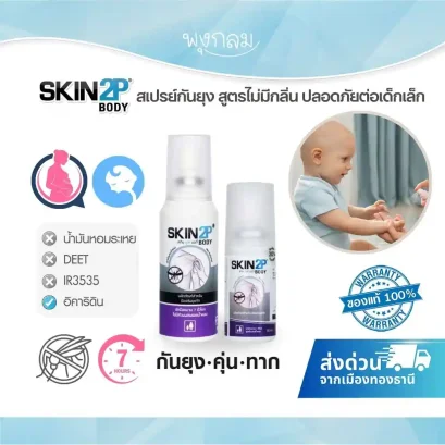 SKIN2P สเปรย์กันยุงสูตรอ่อนโยน นำเข้าจากฝรั่งเศส ใช้อิคาริดิน (Icaridin) ปลอดภัยต่อเด็กเล็กและสตรีมีครรภ์ ป้องกันยุงได้นานกว่า 7 ชั่วโมง