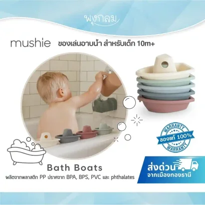 Mushie Bath Boats ชุดเรืออาบน้ำ 5 ชิ้น เสริมจินตนาการและเล่นน้ำอย่างสนุก ปลอดสารพิษ ผลิตในเดนมาร์ก