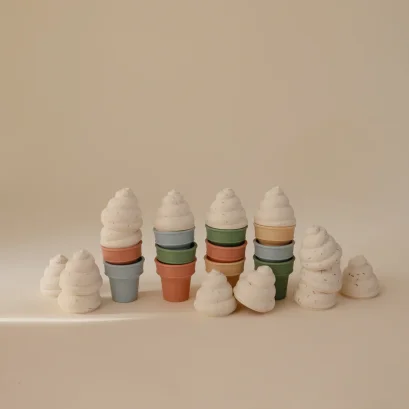 MUSHIE Ice Cream Toy Set ของเล่นไอศกรีมซิลิโคน 4 ชิ้น จับคู่ผสมสีได้ เสริมพัฒนาการ ทำความสะอาดง่าย เหมาะสำหรับเด็ก 10 เดือนขึ้นไป