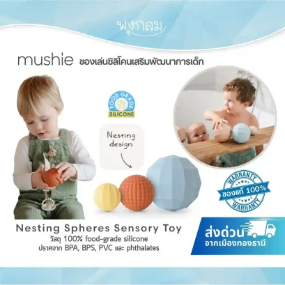 Mushie Nesting Spheres ของเล่นซิลิโคนเสริมพัฒนาการเด็ก ช่วยกระตุ้นประสาทสัมผัส การประสานงาน และการเรียนรู้ เหมาะสำหรับเด็ก 10 เดือนขึ้นไป