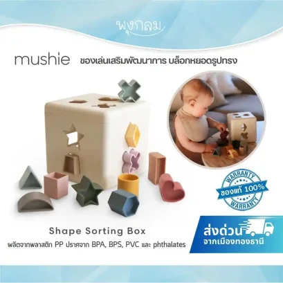 Mushie Shape Sorting Box กล่องหยอดบล็อก 12 รูปทรง เสริมพัฒนาการ ฝึกจับคู่และกล้ามเนื้อมัดเล็ก ปลอดสาร BPA ผลิตในเดนมาร์ก