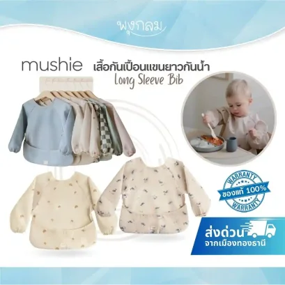 เสื้อกันเปื้อนแขนยาว MUSHIE กันน้ำ แห้งไว น้ำหนักเบา ปรับระดับด้วยเวลโคร มีช่องกระเป๋าหน้า ลดการเลอะเปื้อน เหมาะสำหรับเด็ก 6-24 เดือน