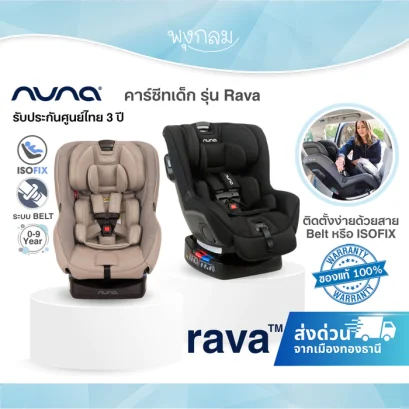 คาร์ซีท Nuna Rava ปรับได้ 3 รูปแบบ ใช้ได้ตั้งแต่แรกเกิดถึง 9 ขวบ เบาะกว้าง นั่งสบาย ปลอดภัยสูงสุด ติดตั้งง่ายด้วย Belt หรือ ISOFIX