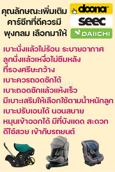 ยี่ห้อ คาร์ซีท Car Seat Isofix ที่พุงกลมแนะนำ : SEEC, Doona, Daiichi