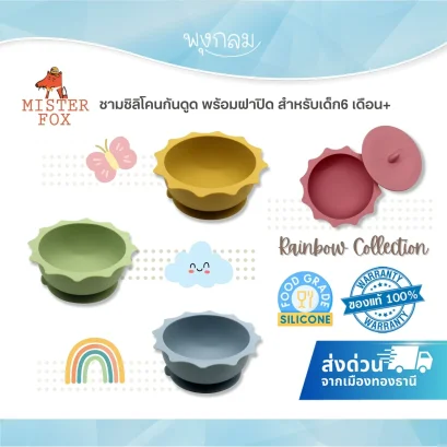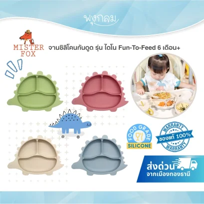 ชามซิลิโคนเด็ก MISTER FOX ลายไดโนเสาร์ ก้นดูดแน่น ผลิตจากแพลตตินั่มซิลิโคน ปลอดภัย BPA Free ทนร้อน เข้าไมโครเวฟและนึ่งได้