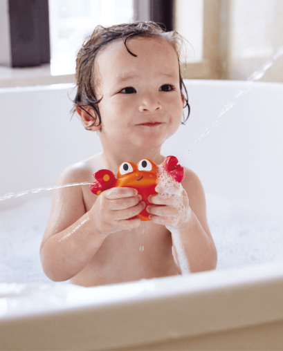 เจ้าปู และเจ้าปลาที่มีความลับสุดกวนซ่อนอยู่ ลองจุ่มลงในน้ำแล้วบีบที่ตัวของพวกเขาจนน้ำเต็ม จากนั้นเอาขั้นมาบีบยิงน้ำออกมา เพิ่มสีสันในช่วงเวลาแห่งการอาบน้ำมากขึ้น Rock Pool Squirters แก๊งสระหินพ่นน้ำ ของเล่นน้ำที่จะอยู่เป็นเพื่อนกับเด็กๆ เวลาชำระล้างร่างกาย