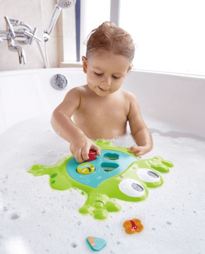 ต่อรูปทรงเรขาคณิตที่มีลวดลายแมลงอยู่ในปากเจ้าอ๊บทีละชิ้น ให้หนูๆ ได้เรียนรู้เรื่องรูปทรงต่างๆ ใต้ท้องของมันยังเก็บของเล่นน้ำชิ้นอื่นๆ ได้ด้วย