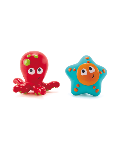 ของเล่นคุณปลาดาว และคุณปลาหมึกยักษ์ สำหรับเล่นบีบและพ่นน้ำ ชิ้นส่วนสามารถถอดออกทำความสะอาดด้านในได้ หมดกังวลเรื่องเชื้อรา มาทายกันว่าน้ำจะออกจุดไหนบ้า