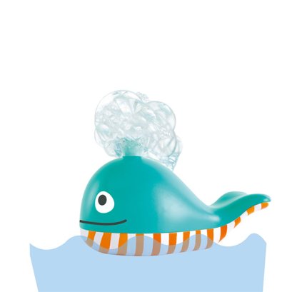เพียงเติมน้ำสบู่ แล้วกดลงน้ำ ฟองน้ำก็พ่นออกมาจากหัวเจ้าวาฬ