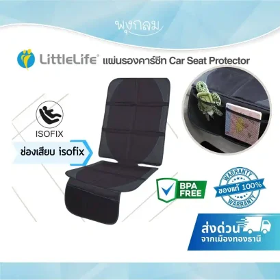 ปกป้องเบาะรถยนต์จากการคราบสกปรก เลอะเทอะ หรือรอยกดทับเสียดสีของคาร์ซีท ทำจากวัสดุโพลีเอสเตอร์และไวนิล มีช่องเก็บของตรงช่วงเท้า สำหรับใส่แก้วหรือของเล็ก ขนาด 12.4x48x1.5 cm