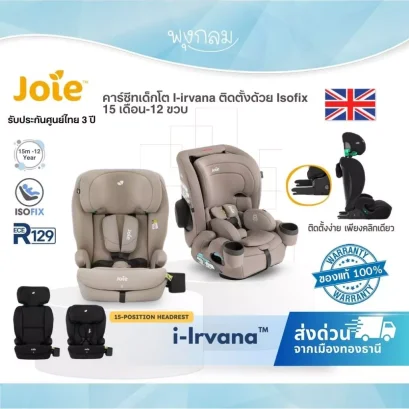 คาร์ซีท Joie i-Irvana มาตรฐาน i-Size ติดตั้ง ISOFIX ปรับใช้งานได้ 2 รูปแบบตามช่วงวัย พนักพิงศีรษะปรับได้ 15 ระดับ น้ำหนักเบา แข็งแรง ทนทาน