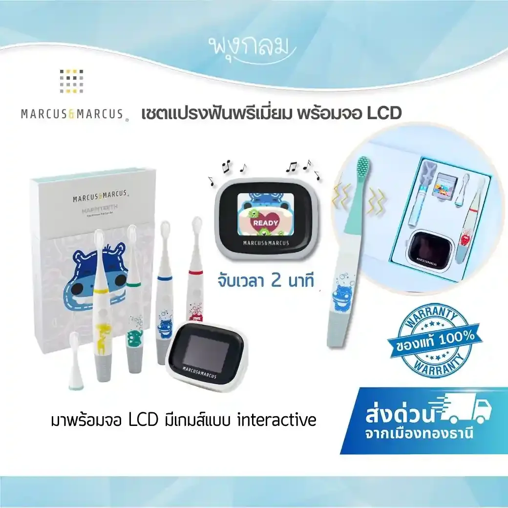 MARCUS & MARCUS Sonic Toothbrush Premium Set เซตดูแลช่องปากสุดล้ำสำหรับคุณหนู ช่วยสอนการแปรงฟันอย่างสนุกสนานด้วยแปรงสีฟันโซนิคที่สั่นด้วยความถี่สูง ทำความสะอาดล้ำลึกและอ่อนโยนต่อเหงือก พร้อมจอ LCD Interactive เกมส์ 3 แบบ ที่จะเปิดอัตโนมัติเมื่อลูกอยู่หน้าจอและเปิดแปรง