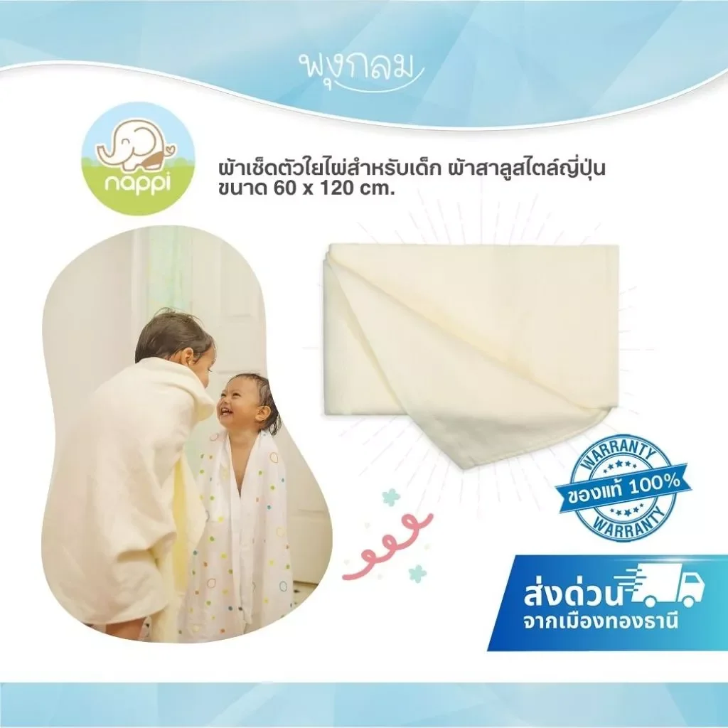 Nappi ผ้าเช็ดตัวใยไผ่สำหรับเด็ก สไตล์ญี่ปุ่น ขนาด 60 x 120 ซม.