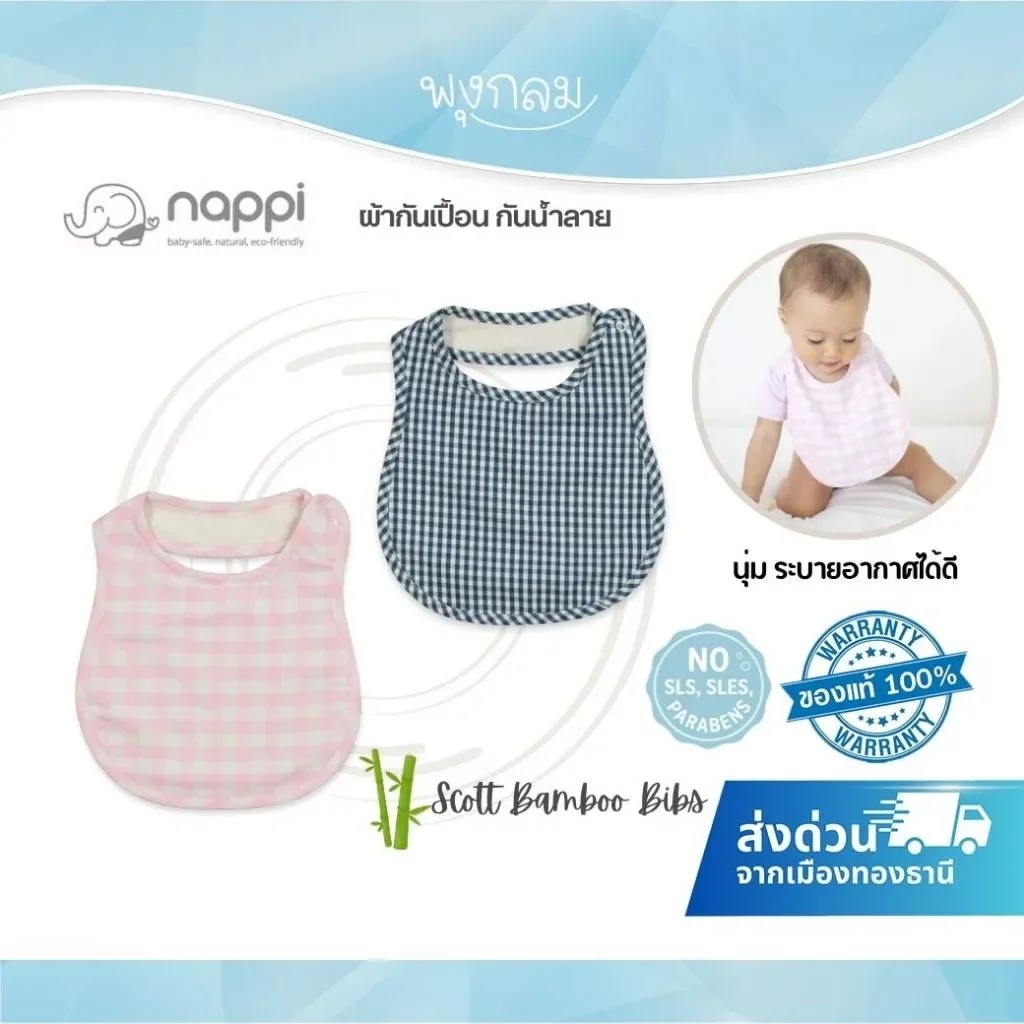 ผ้ากันน้ำลายลายสก๊อตจาก NAPPI ผลิตจากใยไผ่คุณภาพดี ให้สัมผัสนุ่ม อ่อนโยนต่อผิวลูกน้อย ระบายอากาศได้ดี เหมาะสำหรับเด็กที่มีผิวบอบบางและแพ้ง่าย