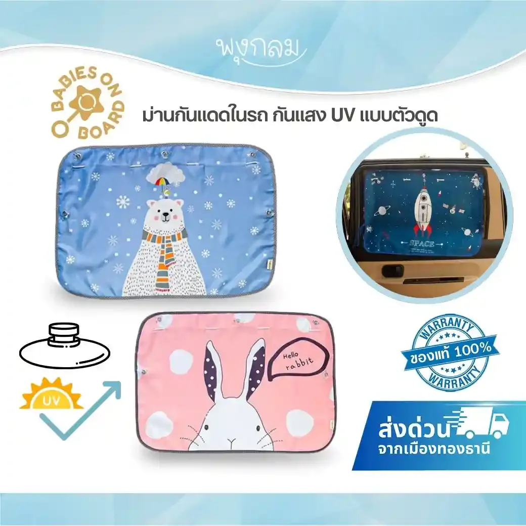ม่านบังแดดติดหน้าต่างรถยนต์ ด้วยลายที่น่ารักๆ ยังใช้บังแดดให้ลูกน้อยเวลาที่นั่งบนคาร์ซีทได้ อย่างสะดวกค่ะ
