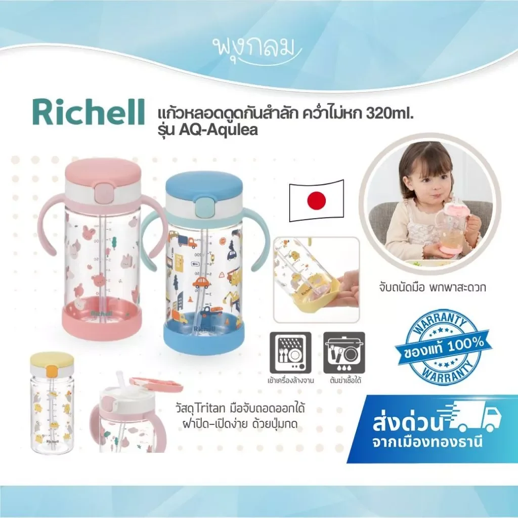 Richell AQ-Aqulea Straw Cup 320ml ตัวช่วยให้ลูกน้อยดื่มน้ำได้อย่างมั่นใจ ปลอดภัย คว่ำไม่หก เหมาะกับการพกพาในทุกวัน