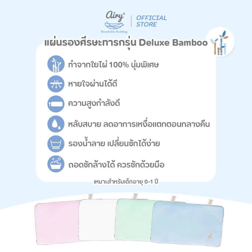- ปลอกด้านนอกผลิตจากผ้ามัสลินดีลักซ์ใยไผ่ 100%
