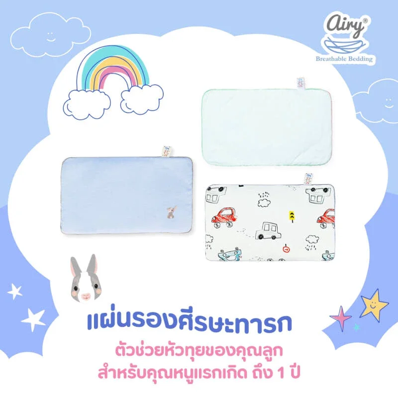 แผ่นรองศีรษะสำหรับเด็กแรกเกิด 1 ปี ออกแบบเพื่อรองรับสรีระศีรษะและต้นคอที่ยังบอบบาง ช่วยรองน้ำลายและแหวะนมระหว่างนอน ระบายอากาศได้ดี และซักทำความสะอาดได้ทั้งชิ้น