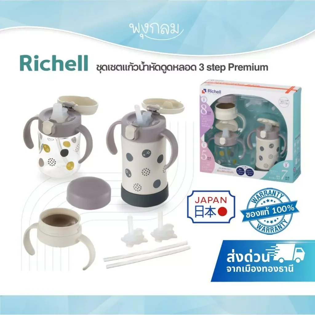 RICHELL ชุดเซตแก้วน้ำหัดดูดหลอด 3 Step Premium (5m+)