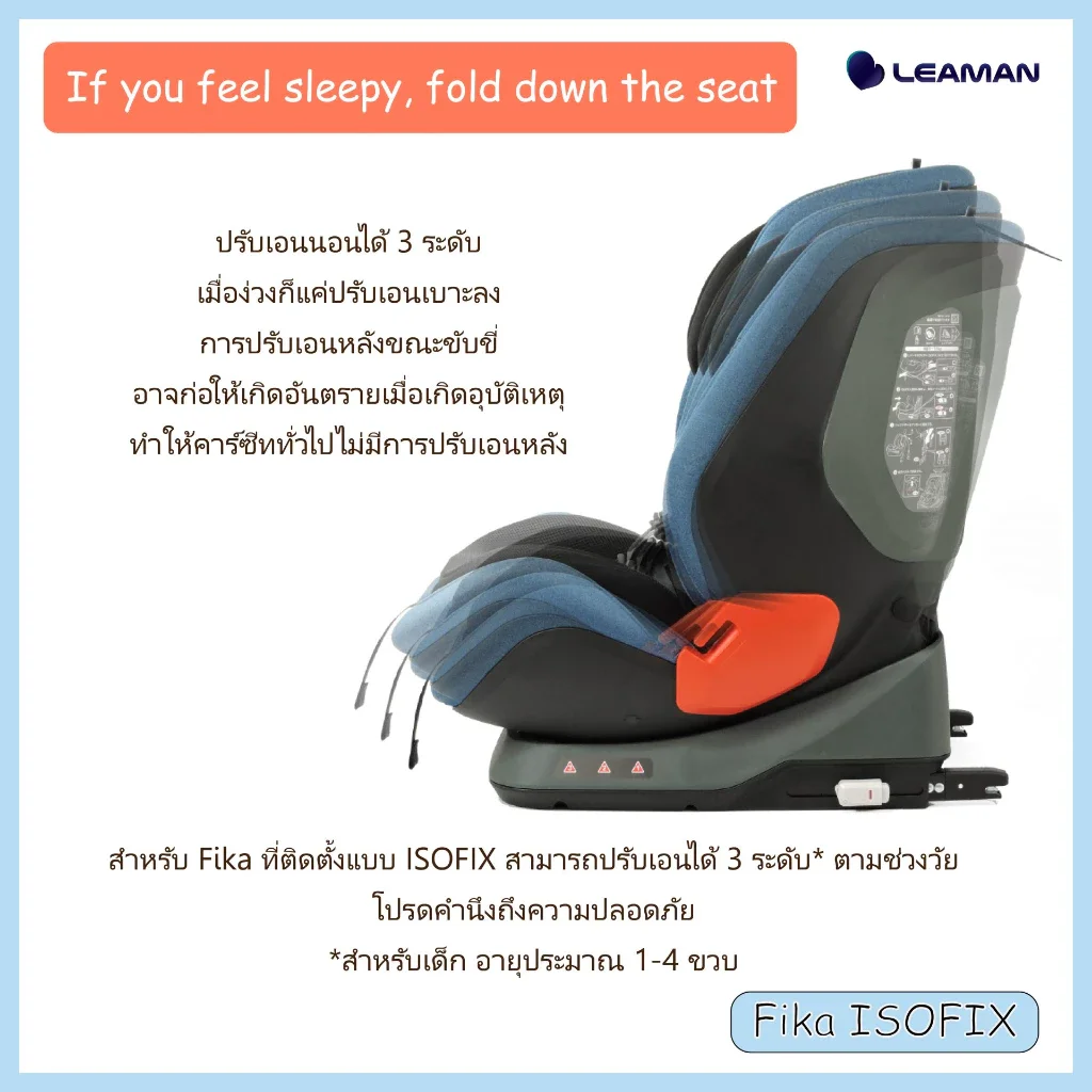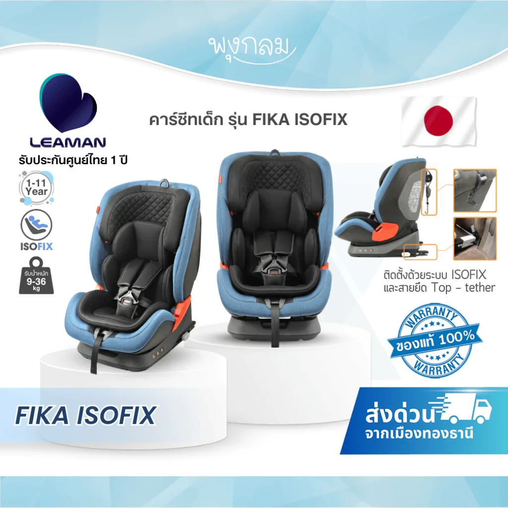 LEAMAN คาร์ซีทเด็ก รุ่น FIKA (9m+) ติดตั้ง Isofix