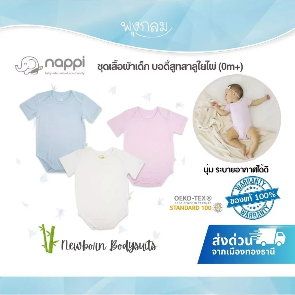 NAPPI ชุดบอดี้สูทเด็กแรกเกิด สาลูใยไผ่ (0+)