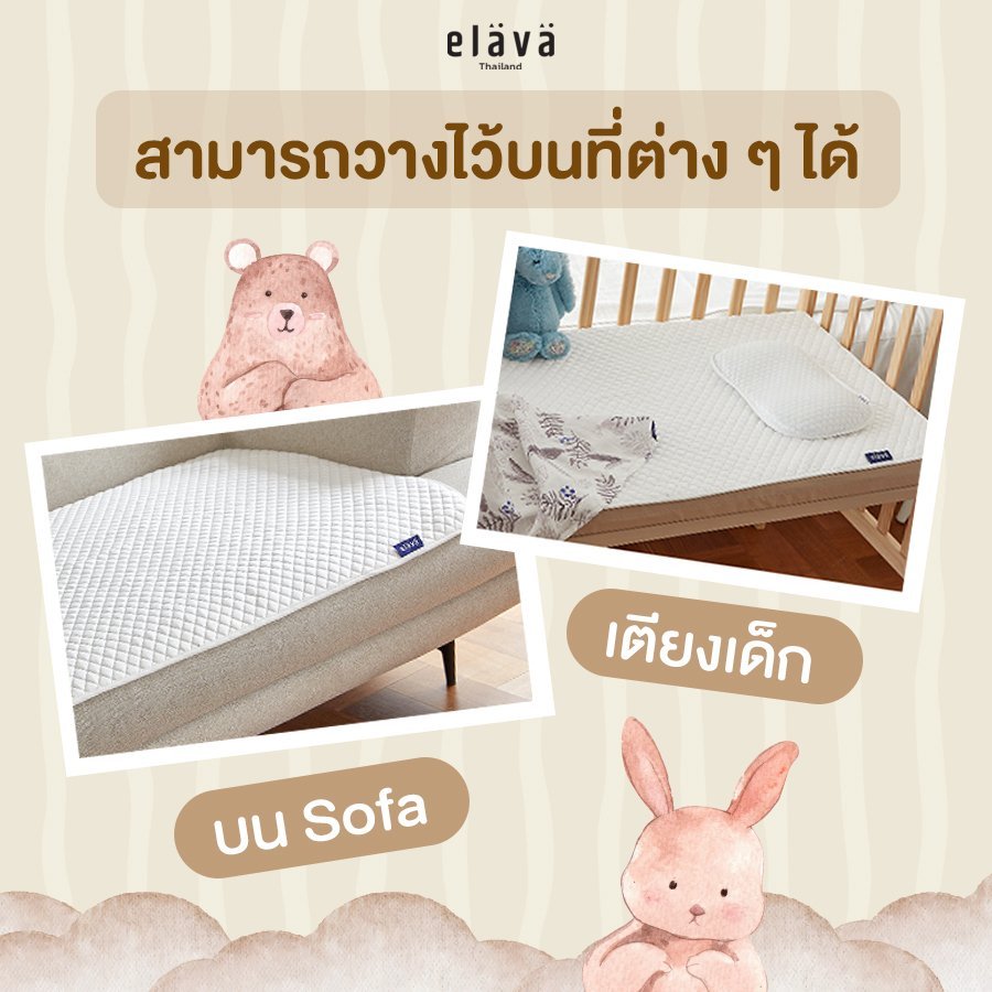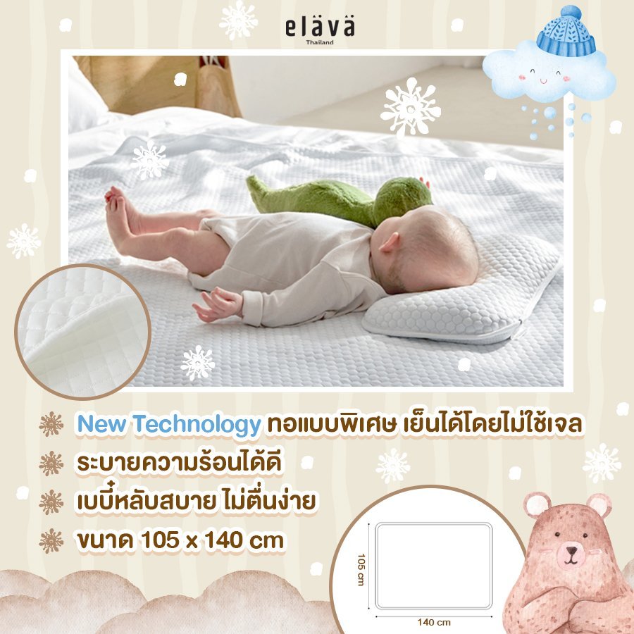 ผ้าปูที่นอนเย็นจาก ELAVA ให้สัมผัสเย็นสบาย ช่วยลดอาการหลังเปียกและความไม่สบายตัวของลูกน้อยขณะนอนหลับ เหมาะสำหรับเด็กตั้งแต่แรกเกิด