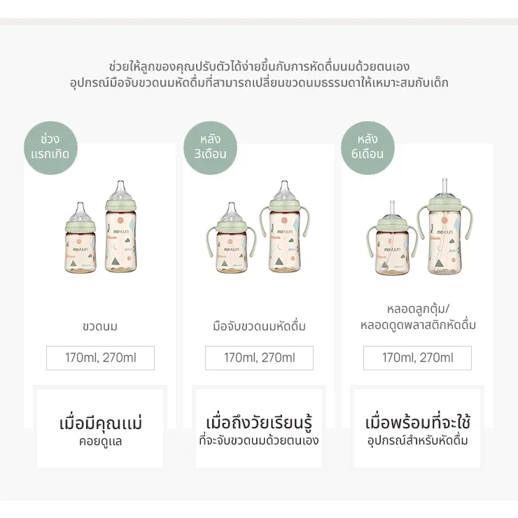 ขวดนมรุ่นใหม่นี้ถูกออกแบบมาอย่างพิถีพิถัน ใส่ใจทุกรายละเอียด ตอบโจทย์การใช้งานตั้งแต่แรกเกิด ไปจนถึงช่วงฝึกดื่ม ช่วยให้การดูแลลูกน้อยเป็นเรื่องง่ายและปลอดภัยมากยิ่งขึ้น
