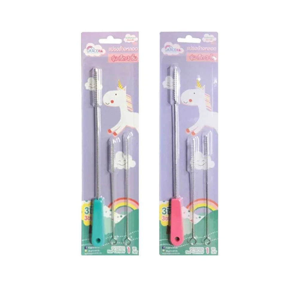 แปรงล้างหลอด GRACE KIDS เซ็ต 3 ชิ้น ออกแบบมาเพื่อทำความสะอาดหลอดดูดน้ำและจุกนมของลูกน้อยอย่างมีประสิทธิภาพ ช่วยขจัดคราบสิ่งสกปรกภายในหลอดได้อย่างทั่วถึง พร้อมขนแปรงนุ่มที่ไม่ทำให้เกิดรอยขีดข่วน