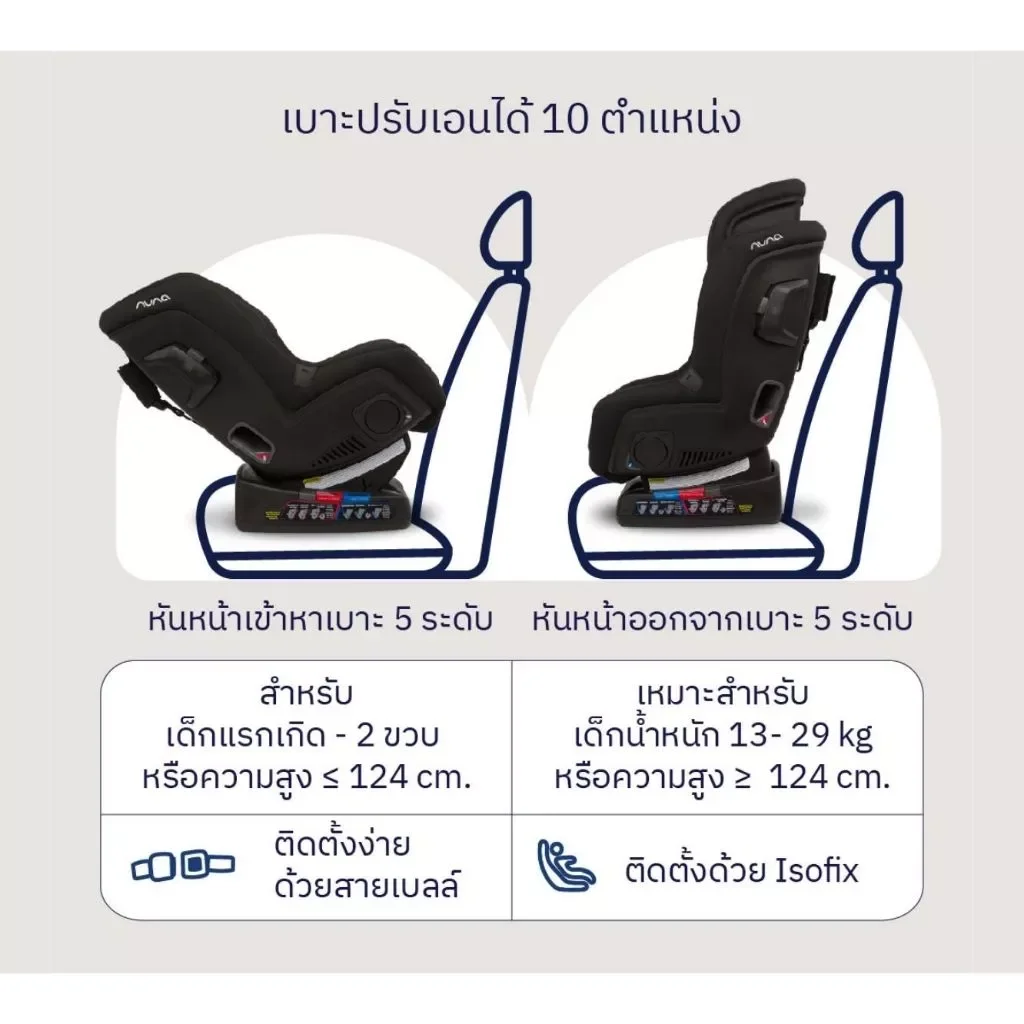 คาร์ซีทรุ่น Nuna Rava ออกแบบมาเพื่อความปลอดภัยและความสบายสูงสุด เหมาะสำหรับเด็กแรกเกิดจนถึงอายุ 9 ขวบ (หรือ น้ำหนัก 29.9 กก.) มาพร้อมโครงสร้างแข็งแรง เบาะกว้าง และฟังก์ชันการใช้งานที่ปรับได้ตามช่วงวัย