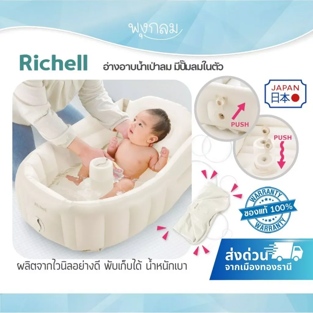 RICHELL อ่างอาบน้ำเด็กเป่าลม พับเก็บได้ ใช้งานสะดวก สำหรับเด็กแรกเกิด 1 ปี