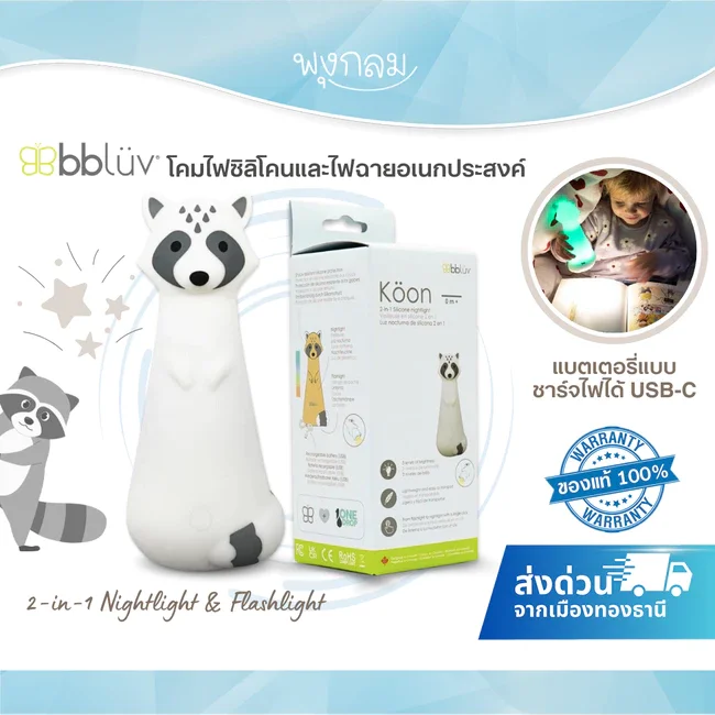BBLUV Koön คือโคมไฟกลางคืนและไฟฉายในหนึ่งเดียว ออกแบบมาเพื่อเด็กและผู้ปกครอง ให้แสงสว่างที่ผ่อนคลาย ช่วยสร้างบรรยากาศอบอุ่นในห้องนอน เหมาะสำหรับการนอนหลับ การให้นมตอนกลางคืน หรือพกพาไปใช้นอกบ้าน