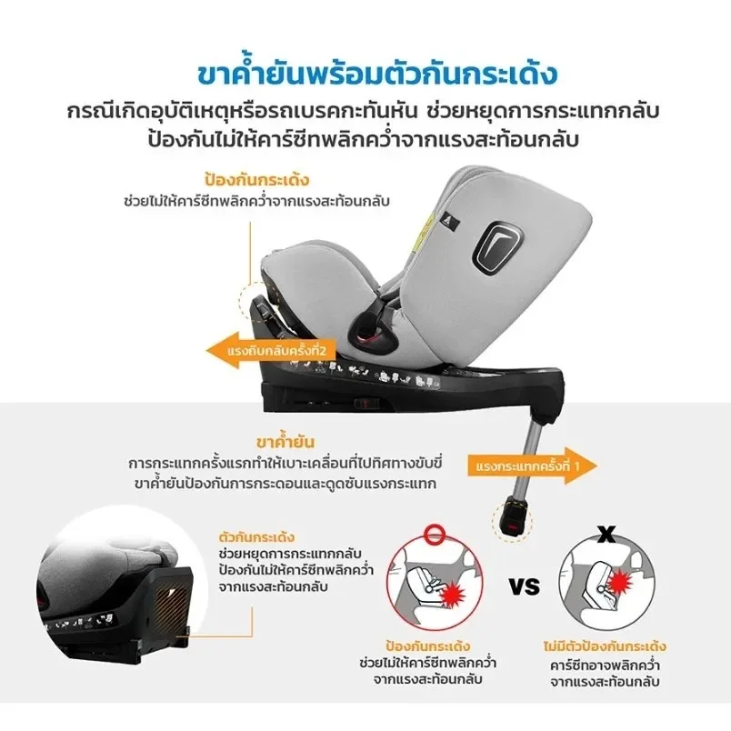 - ระบบติดตั้ง: ISO-FIX พร้อมขาค้ำยัน (Support Leg)