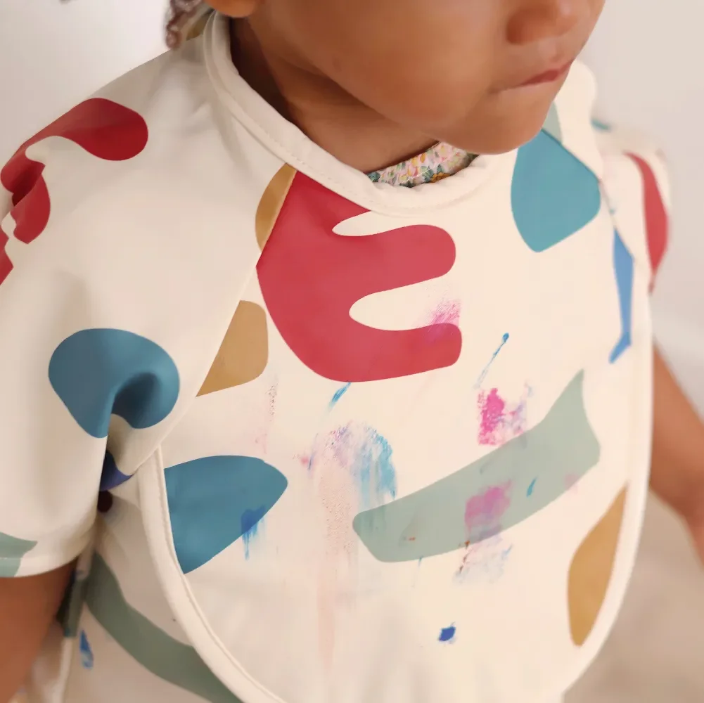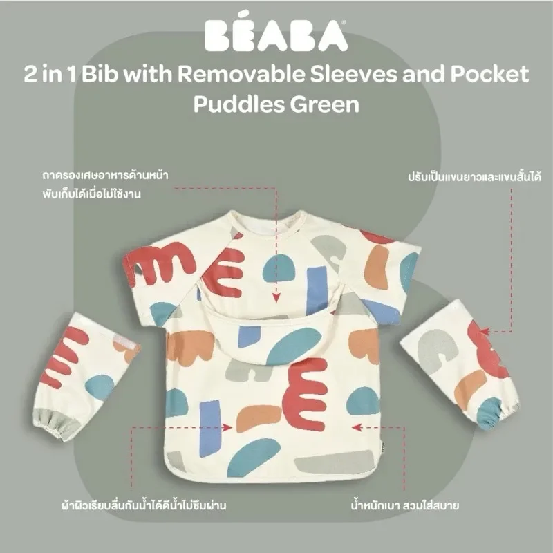 เสื้อกันเปื้อนเด็กจากแบรนด์ BEABA ออกแบบมาเพื่อความสะดวกสบายและการใช้งานที่หลากหลาย สามารถปรับเปลี่ยนเป็นเสื้อกันเปื้อนแขนสั้นได้ พร้อมถาดรองเศษอาหารด้านหน้า เหมาะสำหรับการทานอาหารและกิจกรรมของเด็กเล็ก