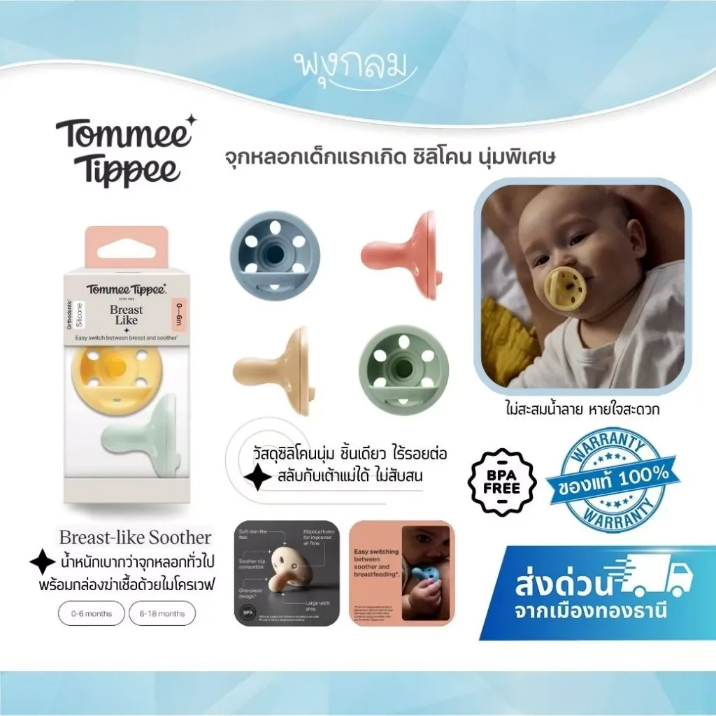 - จุกหลอกซิลิโคนเสมือนเต้านมแม่ ช่วยให้ลูกสงบ ผ่อนคลาย
