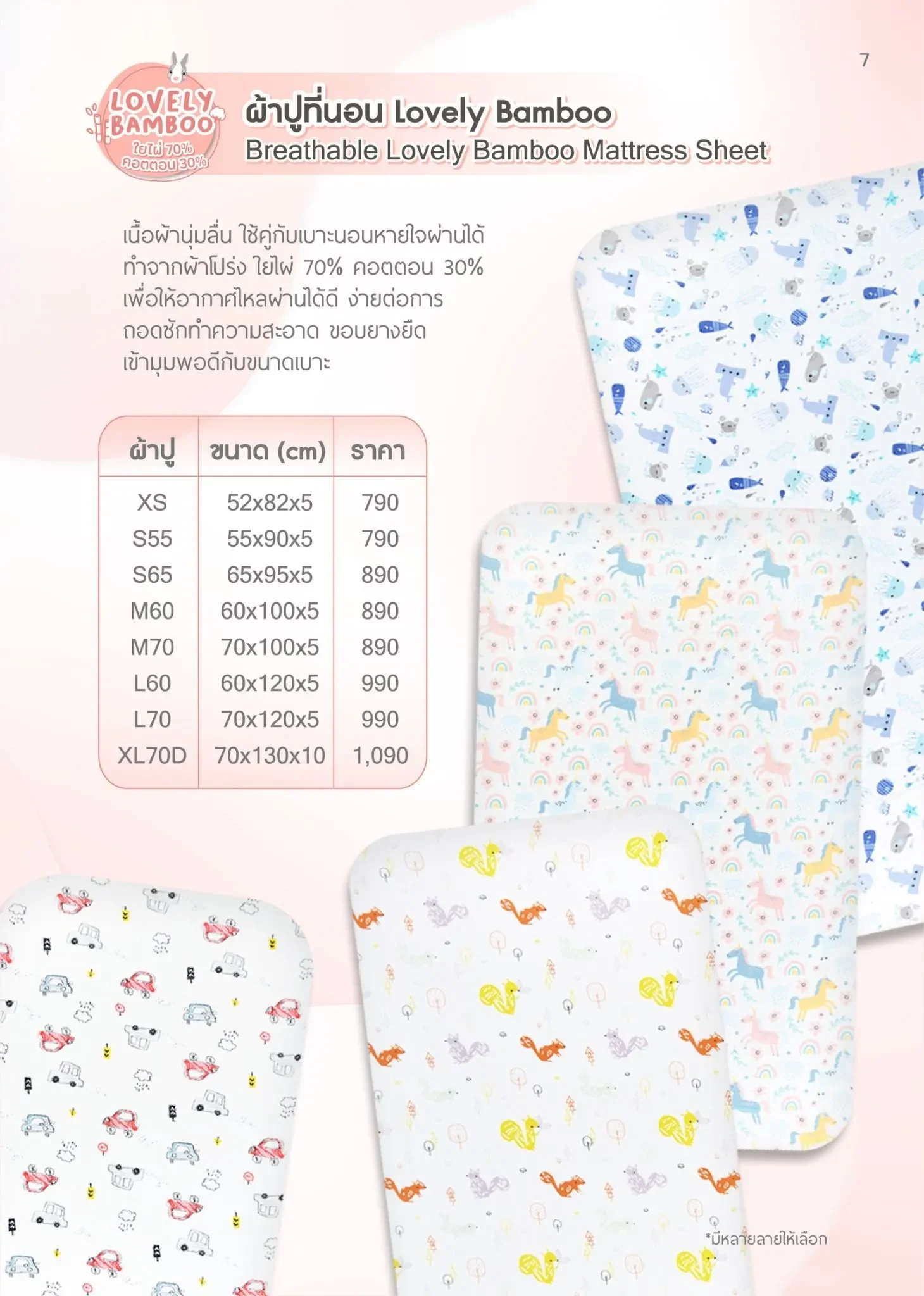 • ผลิตจากใยไผ่ 70% ผสมฝ้าย 30% อ่อนโยนต่อผิวเด็ก