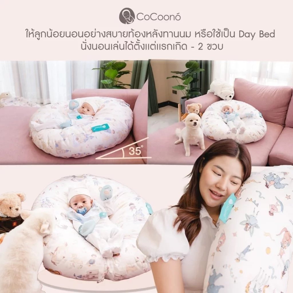 COCOONO Almond 35° ถูกออกแบบเป็น Lounge กึ่งนั่งกึ่งนอนเอียง 35 องศา ช่วยป้องกันภาวะกรดไหลย้อนในทารกแรกเกิด 0-3 เดือน รูปทรง Almond กลมรี เสมือนอ้อมกอดคุณแม่ รองรับสรีระลูกน้อย พร้อมระบบ Air Flow หายใจผ่านได้ ปลอดภัยและสบายตัว
