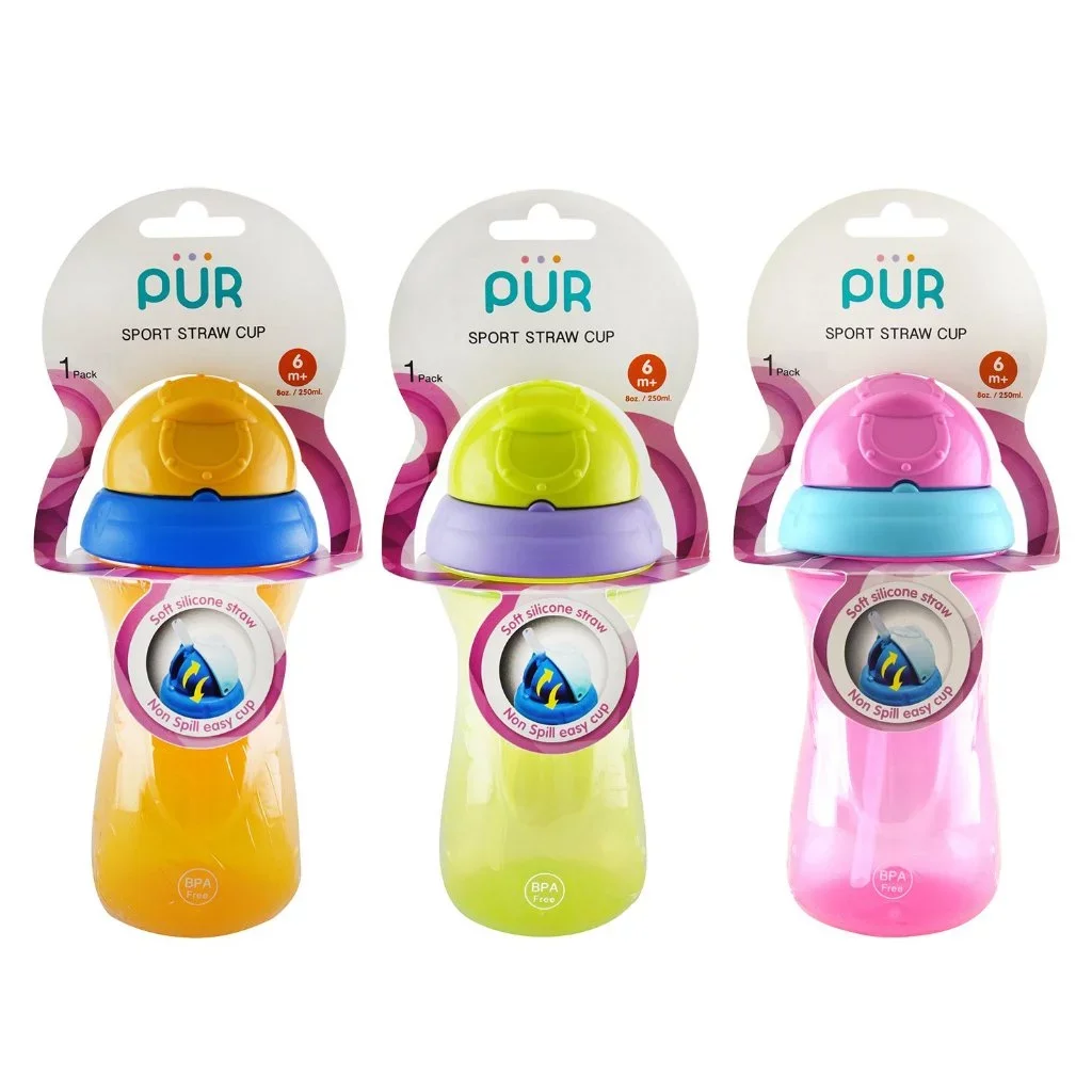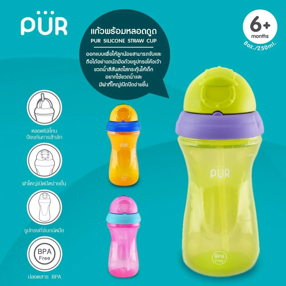 PUR Silicone Straw Cup แก้วน้ำหลอดดูดดีไซน์จับถนัดมือ เพื่อการหัดดูดอย่างมั่นใจ