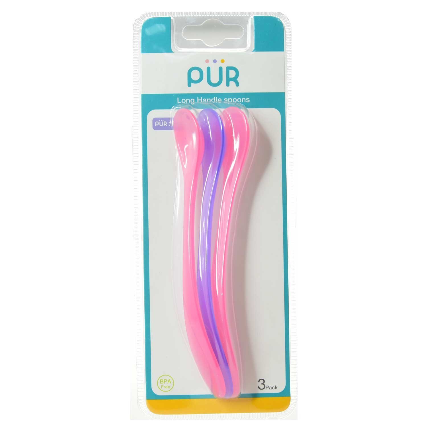 PUR ช้อนป้อนอาหารเด็กด้ามยาว Long Handle Spoons สำหรับเด็ก 6 เดือนขึ้นไป (แพ็ค 3 ชิ้น)